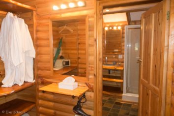 Es gibt zwei Saunen und Pools und unser Chalet „BlueLilly“ ist auch echt toll. Sehr geräumig, schön eingerichtet und alles ist sehr sauber und gepflegt. Wir haben zwei Terrassen mit toller Aussicht, eine Kaminecke mit bequemen Sesseln und ein großzügiges Bad mit flauschigen Bademänteln.