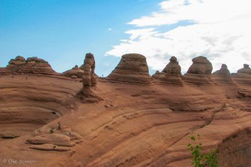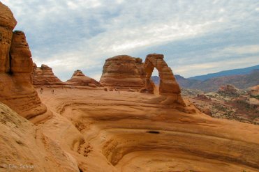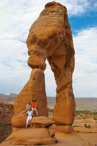 Wir frühstücken noch im Hotel und brechen recht zügig auf. Die Morgen-Temperaturen sind dann aber ziemlich angenehm und am Himmel hängen sogar ein paar Wolken, die uns hin und wieder etwas Schatten spenden. So ist die Wanderung nicht so anstrengend wie befürchtet und gegen 10:00 Uhr erreichen wir den Delicate Arch.