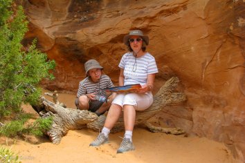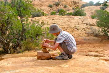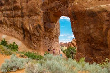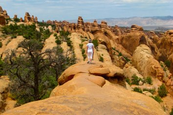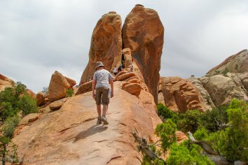 Wir sind natürlich froh über seine neu entdeckte Leidenschaft und so geht es dann im Devil’s Garden weiter mit einem Trail, der uns am Landscape Arch, am Wall Arch und am Tunnel Arch vorbeiführt und schließlich am Double O Arch endet.