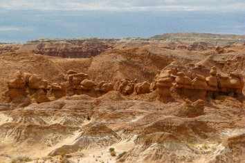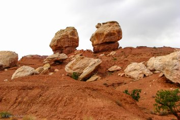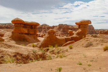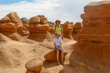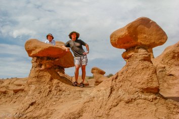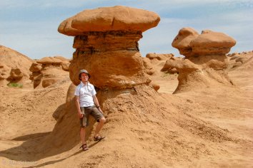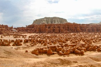 Unterwegs machen wir noch einen kleinen Abstecher in den Goblin Valley State Park, der keinen größeren Umweg erfordert, sondern quasi direkt an der Strecke liegt. Dieser Park hat seinen Namen von den bizarren Felsbildungen aus rotem Sandstein, die von Weitem wie steinerne Kobolde aussehen. Man könnte sie aber auch gut für Riesenpilze halten