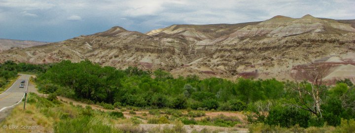 Heute geht es vom Arches Park nun weiter in Richtung Capitol Reef. Gegen 9:00 Uhr brechen wir auf in die laut Vorhersage kühlere Region.