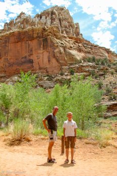 Nach einem Stopp im Visitor Center, wo wir uns über die Geschichte des Parks informieren, fahren wir den Scenic Drive entlang und kommen dabei durch Fruita — eine Mormonensiedlung, die bis in’s 20. Jahrhundert hinein bestand, von der aber heute nur noch Ruinen erhalten sind.