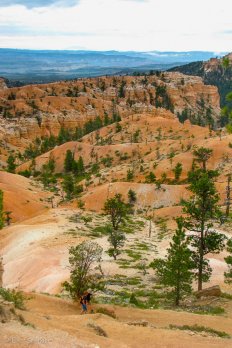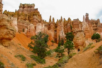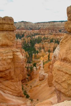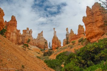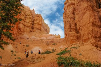 Nach dem Queen’s Garden Trail und dem Navajo-Trail laufen wir noch die Peekabo-Loop entlang und können dabei die Felsnadeln des Canyon auch von unten bestaunen. Zuletzt kommt als Lohn für unsere Mühen sogar noch etwas die Sonne kurz heraus.