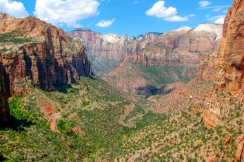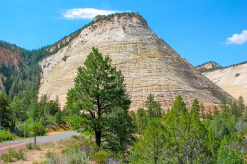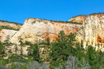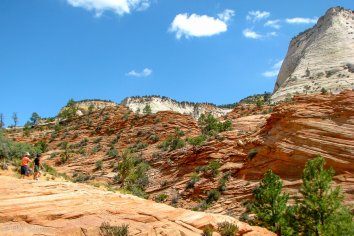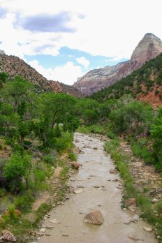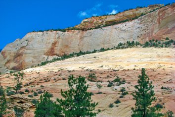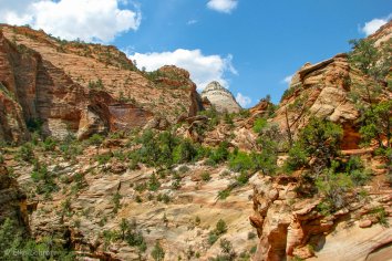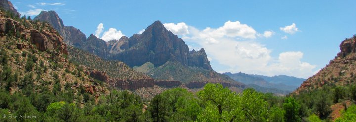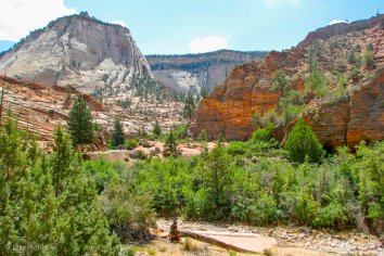 Der Zion Nationalpark ist auch wieder völlig anders als die bisherigen Parks: Es gibt hier schroffe, hohe Felswände und Dome und ein ebenfalls reiches Farbenspiel. Vor allem aber gibt es viel Grün!