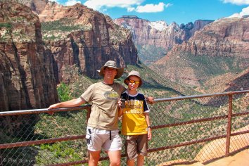 Wir kommen durch den Osteingang in den Park und wandern dort zunächst den Canyon Overlook Trail entlang. Da es hier wieder deutlich wärmer ist als im Bryce Canyon, kommen wir dabei ganz schön in’s Schwitzen. Wir werden aber durch fantastische Ausblicke in den Canyon mehr als entlohnt.