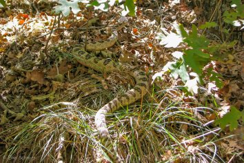 Spektakulär ist dafür für uns der Rückweg, denn wir sehen direkt am Wegrand eine riesige Klapperschlange. Sie ist fast zwei Meter lang — und damit wirklich ein sehr großes Exemplar ihrer Gattung. Entsprechend viele Leute bleiben stehen und bestaunen sie aus respektvoller Entfernung.