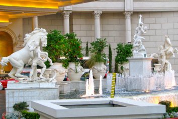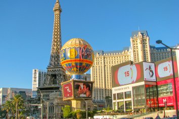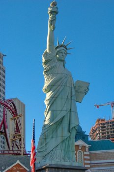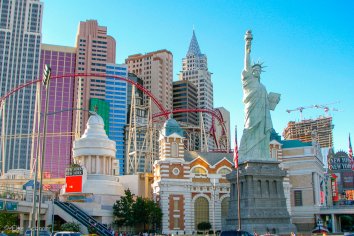 Wir besuchen Caesars Palace — einem römischen Palast nachempfunden mit vielen Statuen und Wasserspielen. In New York bewundern wir die Freiheitsstatue und die weltberühmte Wolkenkratzer-Skyline und in Paris finden wir natürlich den Eiffelturm und den Arc de Triumphe.