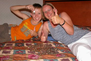Als wir später im Hotel unsere Taschen ausleeren und nachzählen, sind es fast 300 Quarter — ein ganz ordentlicher Profit bei nur einem Quarter Einsatz.
