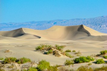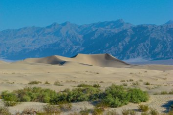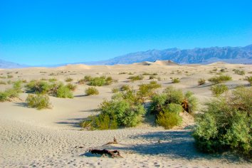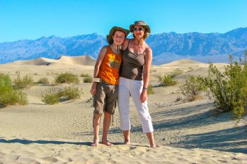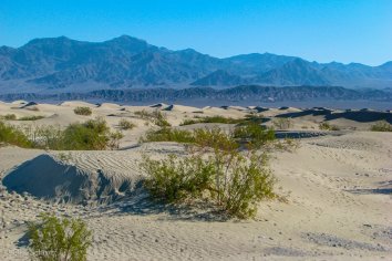 Auf der weiteren Fahrt durch das Death Valley machen wir einen Zwischenstopp an den Sanddünen. Hier kann man sich schon gut vorstellen, dass man ohne GPS die Orientierung verlieren kann! Wir laufen eine Weile barfuß durch den heißen Quarzsand, das fühlt sich richtig gut an — wie an der Ostsee