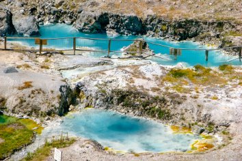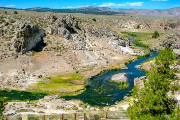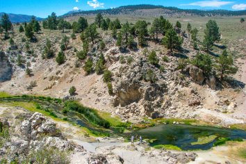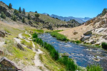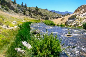 Später folgen noch weitere Stopps: Bei Hot Creek machen wir einen kurzen Abstecher zu den heißen Quellen. Leider kommt man gerade nicht sehr nah heran: wegen seismischer Aktivität ist ein Teil abgesperrt und es riecht ziemlich stark nach Schwefel!