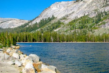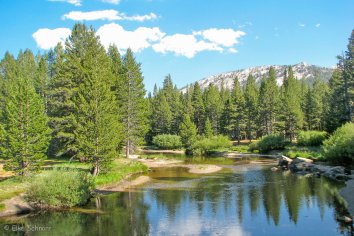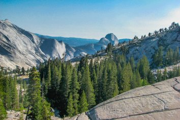 Über den Tioga-Pass kommen wir dann schließlich in den Yosemite Nationalpark. Die Landschaft hier ist mal wieder völlig anders mit hohen Granitwänden, Wasserfällen, alpinen Matten und Bergseen — wir kommen uns vor wie in den Rocky Mountains.