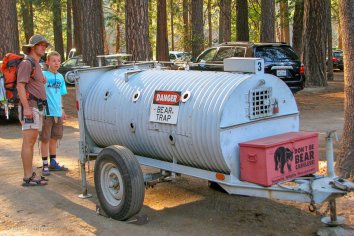 Auf der Tioga Road durchqueren wir dann den Nationalpark, bis wir am westlichen Ende das Yosemite Village erreichen. Unsere Unterkunft hier ist eine kleine Hütte auf einem Campingplatz.
