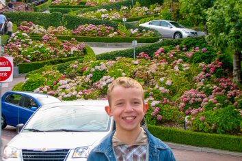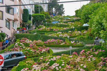 Im Anschluss bummeln wir noch etwas in Richtung Hafen. Dabei kommen wir auch durch die Lombard Street, die mit 27 Prozent Gefälle extrem steil ist.