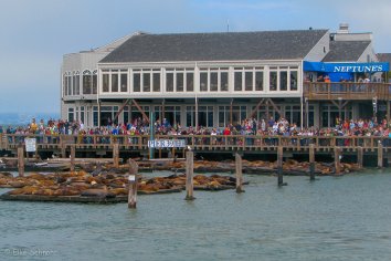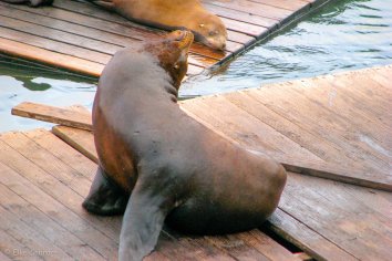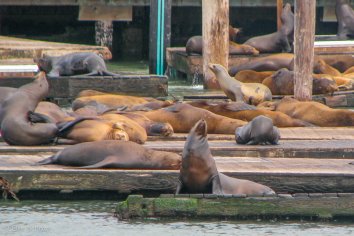 Auf den Bootsstegen vom Pier 39 aalen sich an die 100 Seelöwen in der Sonne — natürlich ebenfalls eine Attraktion für die Besucher, aber offenbar ein ziemliches Ärgernis für die Boots-Eigner.