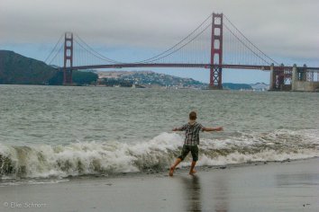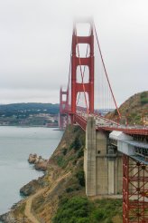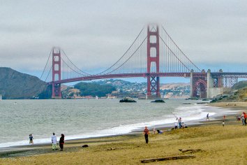 Von der Baker Beach aus können wir sie zum ersten Mal sehen: sie ist fast vollständig aus dem gewohnten Dunst befreit. Die Brücke hat mit 2,7 Kilometern die drittgrößte Spannweite der Welt und wird scheinbar permanent gestrichen: Immer wenn die „Anstreicher“ einmal durch sind, müssen sie quasi am anderen Ende wieder neu anfangen.