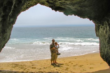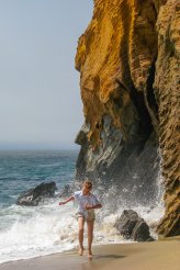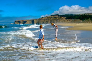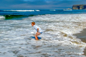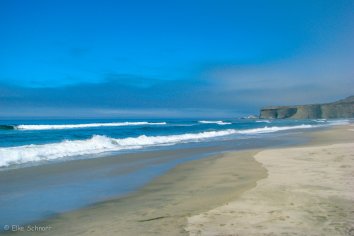 Hier will eigentlich nur Christi noch mal baden gehen, aber die Wellen sind so riesig, dass auch Andreas und ich unfreiwillig geduscht werden.