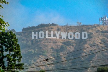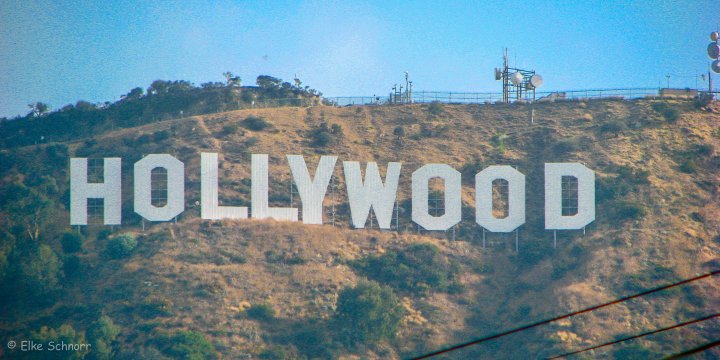 Da wir früh dran sind und bis zur Öffnung noch genügend Zeit haben, machen wir noch einen kleinen Umweg, um uns den Hollywood-Schriftzug anzuschauen. Leider kommen wir nicht sehr nahe an ihn heran und Hochwandern ist nicht erlaubt. So können wir seine Größe — jeder Buchstabe ist immerhin 15 Meter hoch — nur aus der Ferne erahnen.