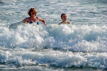 Zurück in Santa Monica gehen wir noch für eine Stunde an den Strand und kämpfen mit den Wellen, die heute noch gewaltiger erscheinen als gestern.