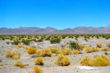 Wir fahren auf dem Weg zum Grand Canyon große Strecken durch die Mojave-Wüste mit recht eintöniger Landschaft — dafür aber mit ordentlichen Temperaturen: für unser Empfinden ist es brütend heiß (das Thermometer zeigt 112 Fahrenheit, was etwa 44 Grad entspricht).