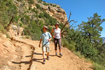 Wir kommen natürlich nicht bis ganz nach unten — das wäre zu weit und an einem Tag mit Wiederaufstieg — zumindest für uns — nicht zu schaffen. Aber etwa 1,5 Meilen klettern wir in den Canyon hinunter und können dabei grandiose Ausblicke auf die berühmteste Schlucht der Erde genießen.