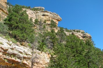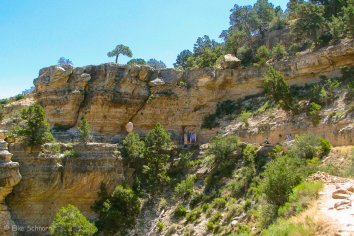 Der Wiederaufstieg ist ungleich anstrengender — zumal bei den heutigen Temperaturen — aber schließlich kommen wir wieder oben an und nach einer kurzen Mittagspause fahren wir zum Yavapai Viewpoint.