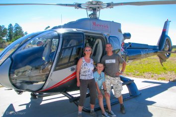 Einen nochmals ganz anderen Blickwinkel verspricht der Nachmittag. Wir fahren zum Grand Canyon Airport, wo wir mein Geburtstagsgeschenk einlösen: einen Gutschein über einen Helicopter-Flug mit Maverick über den Canyon. 50 Minuten lang genießen wir die Farbenvielfalt und Ausmaße dieses spektakulären Naturwunders aus der Vogelperspektive. Ein unvergessliches Erlebnis!