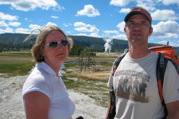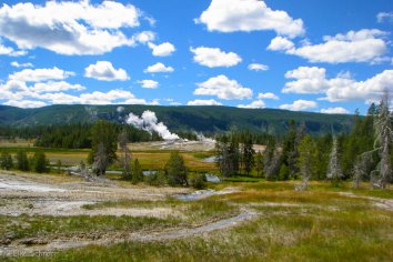 Nach dem Frühstück fahren wir heute in Richtung Westen, um die Geysire des Upper Geyser Basin anzuschauen.