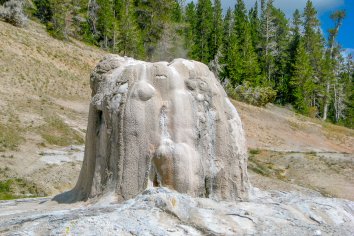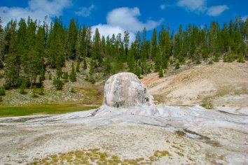 Jeder ist irgendwie einzigartig. Manche haben sehr kurze Eruptionsphasen, wie z.B. der Anemone Geyser, wo man alle 7-10 Minuten sämtliche Stadien des Ausbruchs beobachten kann: Erst füllt sich der Pool lautlos, läuft dann über und große Blasen blubbern, bis plötzlich das Wasser bis zu drei Metern hoch herausschießt, um schließlich mit einem Gurgeln wieder im Erdinnern zu verschwinden.