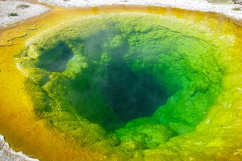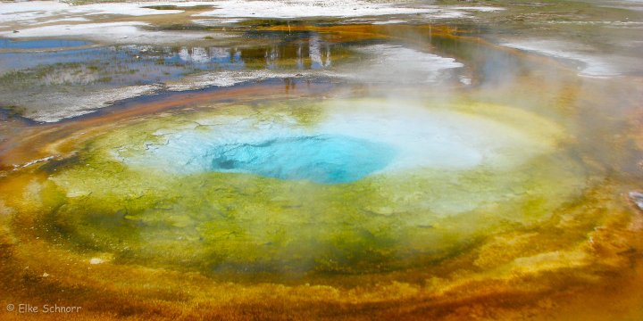Der schönste und farbenreichtse Pool ist jedoch der Morning Glory Pool — benannt nach einer Blüte der Purpurwinde: