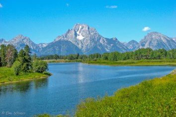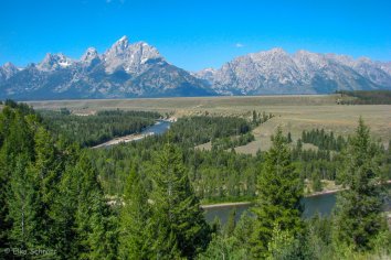 An unserem zweiten Tag im Grand Teton Park haben wir den Taggart Lake auf dem Programm. Zunächst fahren wir aber noch auf dem Scenic Drive entlang des Snake Rivers und genießen die tollen Aussichten auf das Bilderbuchpanorama der Tetons.