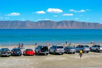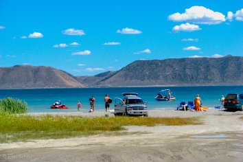 Am idyllischen Bear Lake machen wir eine kurze Mittagspause. Der See schimmert in den schönsten Türkis- und Blautönen und ist ein recht populäres Ferienziel. Leider finden wir entlang des 30 Kilometer langen Strandes keine einzige öffentlich zugängliche Stelle, ohne Eintritt zu zahlen. Große Teile des Strandes sind in Privatbesitz oder man muss Mitglied in irgendeinem Club sein, um Zugang zum Strand zu bekommen.