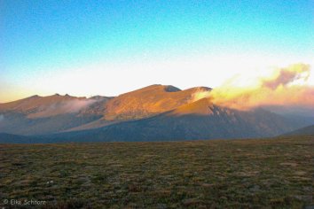 Wir durchqueren auf der Trail Ridge Road den komplette Park, erreichen dabei auf der höchstgelegenen asphaltierten Passstraße der USA unseren persönlichen Höhenrekord mit 3714 Meter und überqueren die kontinentale Wasserscheide zwischen dem Pazifik und dem Atlantik.