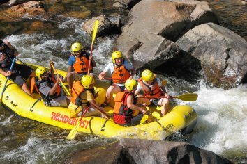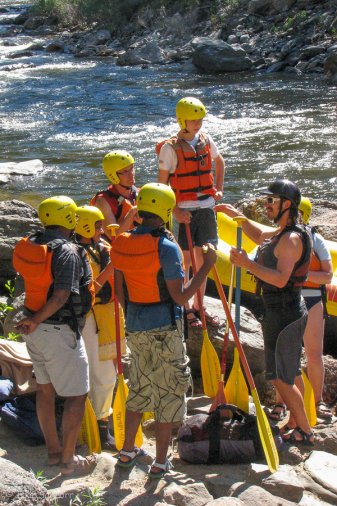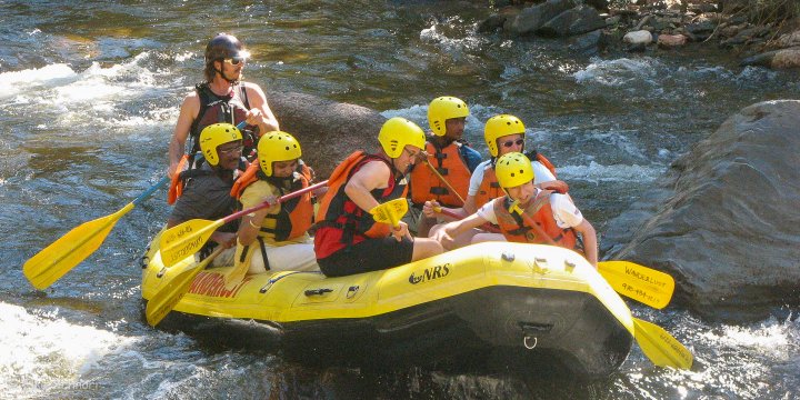 Für den Nachmittag war Rafting angesagt. Wir fuhren nach Fort Collins, wo wir bei Wanderlust — einem recht deutsch anmutendem Namen — eine Halbtages-Tour auf dem Poudre River gebucht hatten. Wegen dem um diese Jahreszeit relativ niedrigen Wasserstand wird zwar leider nur noch die Beginner-Tour angeboten — aber wir haben trotzdem jede Menge Spaß