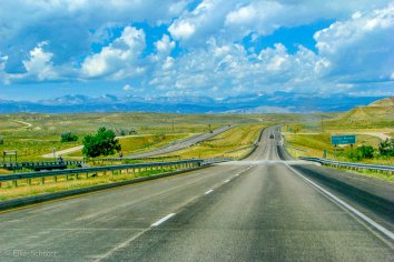 Mit der weiteren Fahrt wird es dann langsam etwas kühler und wir können in der Ferne die teilweise schon schneebedeckten Gipfel der Rocky Mountains sehen. Die höchste Stelle überqueren wir am Powder River Pass, wo auf knapp 3000 Meter Höhe schon ein recht frischer Wind pfeift.