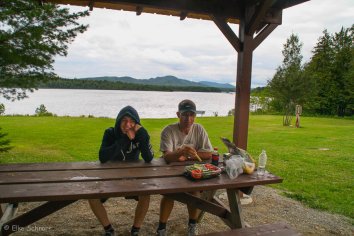 Gegen 12:00 Uhr verlassen wir den Park wieder und fahren los in Richtung Kanada. Wir fahren auf der Golden Road entlang des Penobscot River — was so ziemlich genau unserer Raftingstrecke von gestern entspricht.