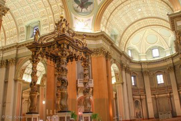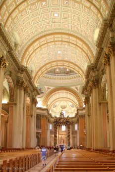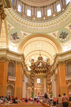 Hier schauen wir uns dann die Kathedrale Marie Reine du Monde an. Besonders beeindruckend sind die mächtigen Säulen der Frontseite und das großzügige Innere mit einem goldüberzogenem Baldachin.