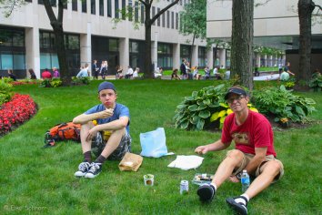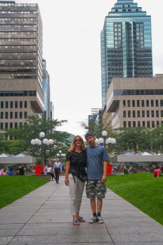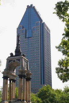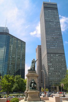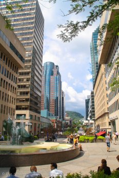 Wir bummeln durch Montreal Downtown zwischen den Hochhäusern hindurch und laufen weiter über den Boulevard René-Lévesque bis zum Dorchester Square.