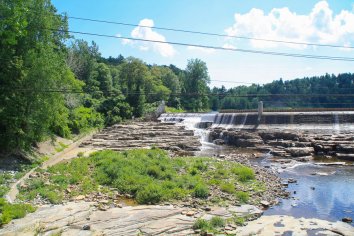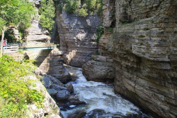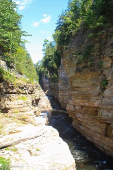 Gegen Mittag machen wir unseren ersten Zwischenstopp bei der Ausable Chasm. Hier zwängt sich der Ausable River durch eine spektakuläre, teilweise bis zu 60 Meter tiefe Klamm und wir laufen den zwei Meilen langen Trail entlang des Rim.