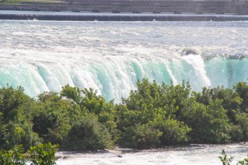 Wir fahren also auf Goat Island — der einzigen amerikanischen Stelle, auf der man die Fälle gut sehen kann. Die Ziegeninsel teilt die Wasserfälle in die auf amerikanischem Staatsgebiet liegenden American Falls, von denen sich der kleine, nur 12 Meter breite Breidal Veil Fall abgespalten hat, und die Horseshoe Falls, die größtenteils auf kanadischem Gebiet liegen.