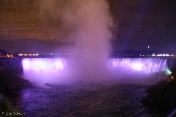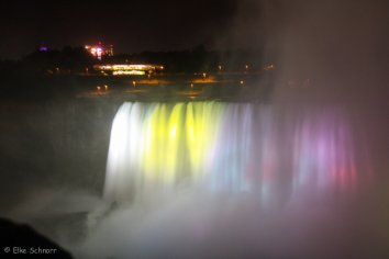 Wir gehen etwas Essen und anschließend noch einmal zu den Wasserfällen, um die abendliche Lichtershow und das Feuerwerk zu genießen. Dabei fällt dann doch auf, dass das kleine kanadische Örtchen Niagara Falls seeeehr touristisch ist und die Wasserfälle extrem vermarktet werden. Rummelbuden, Wachsfigurenkabinette, Riesenräder und ein Casino — man könnte meinen, man wäre doch auf der amerikanischen Seite