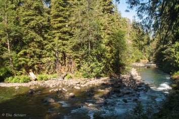 Von hier wandern wir fast drei Stunden lang auf dem Lover’s Lane Trail entlang des Sol Duc River und kommen an einigen schönen Wasserfällen vorbei — u.A. an den Sol Duc Falls — die hier die Hauptattraktion sind. Wenn man nicht ganz so viel laufen möchte, erreicht man diese auch auf einem deutlich kürzeren Trail.