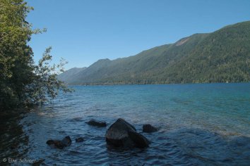 Später fahren wir am Ufer des malerischen Lake Crescent entlang, der viele schöne Ausblicke bietet. Das blaugrüne Wasser mit seinen Spiegelungen ist einfach toll!
