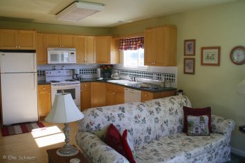 Andreas und ich fahren nochmal schnell los und besorgen für Christi eine Pizza und für uns ein paar Sandwiches bei Subway und dann essen wir auf der Terrasse vor unserem Cottage und genießen dabei den tollen Ausblick.