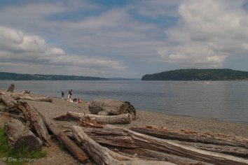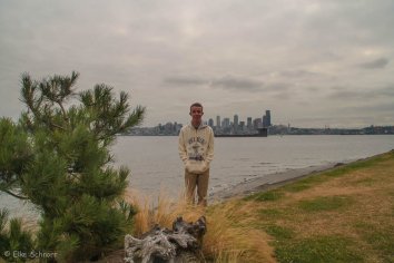 Am Alki Point verdirbt uns leider ein fettes Containerschiff die Sicht auf die Skyline. Aber da es heute morgen eh recht trüb ist, wären die Fotos auch sonst nicht so dolle geworden.