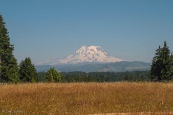 Unterwegs füllen wir beim Walmart noch unsere Vorräte auf und müssen wegen einer Sperrung des Highway 7 einen längeren Umweg fahren. Das ist allerdings gar nicht schlimm, denn so erhaschen wir auf der Fahrt schon erste Blicke auf den Mt. Rainier: