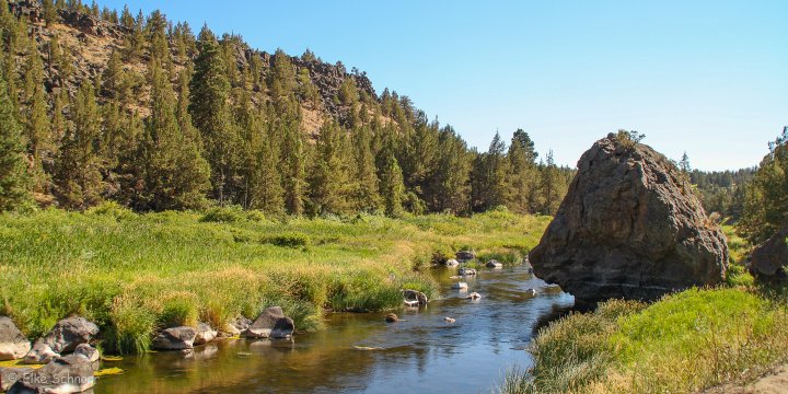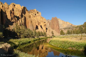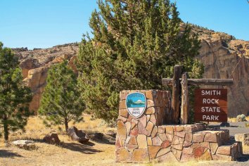 Die Temperaturen steigen inzwischen immer mehr und wir bemerken einige Brände unterwegs. Als wir gegen 16:00 Uhr im Smith Rock State Park ankommen, zeigt das Thermometer immer noch 35 Grad. Das wird wohl eine schweißtreibende Angelegenheit…