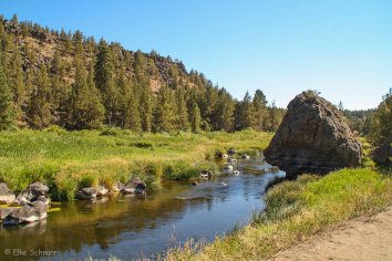 Die Strecke führt zunächst vorbei an schier endlosen Obstplantagen und Weinbergen, später durch tiefe Wälder entlang des Hood River (die passenderweise Namen wie Sherwood und Nottingham haben) und schließlich durch eine Steppenlandschaft, dass man meinen könnte, man wäre in New Mexico.