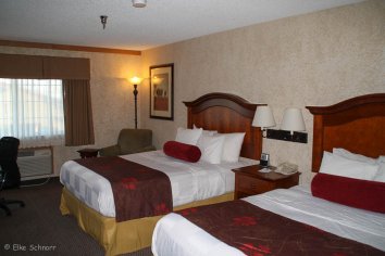 Wir erfrischen uns mit ein paar eisgekühlten Getränken und fahren dann noch 15 Minuten zu unserem vorgebuchten Hotel BEST WESTERN PLUS Rama Inn. Das Zimmer ist ok — ein typisches Best Western.