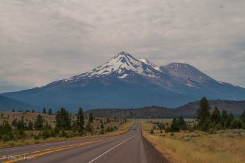 Die Fahrt zieht sich, aber wir kommen unter anderem am Mt. Shasta vorbei — einem weiteren Vulkan in der Kaskadenkette — und können schöne Ausblicke auf ihn genießen: