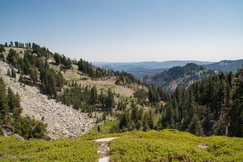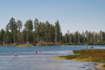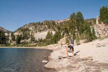 Gegen 13:30 Uhr kommen wir dann im Lassen Volcanic National Park an. Wir halten unmittelbar nach dem Nordeingang am Manzanita Lake und laufen ein Stück durch den Wald und am Ufer entlang.